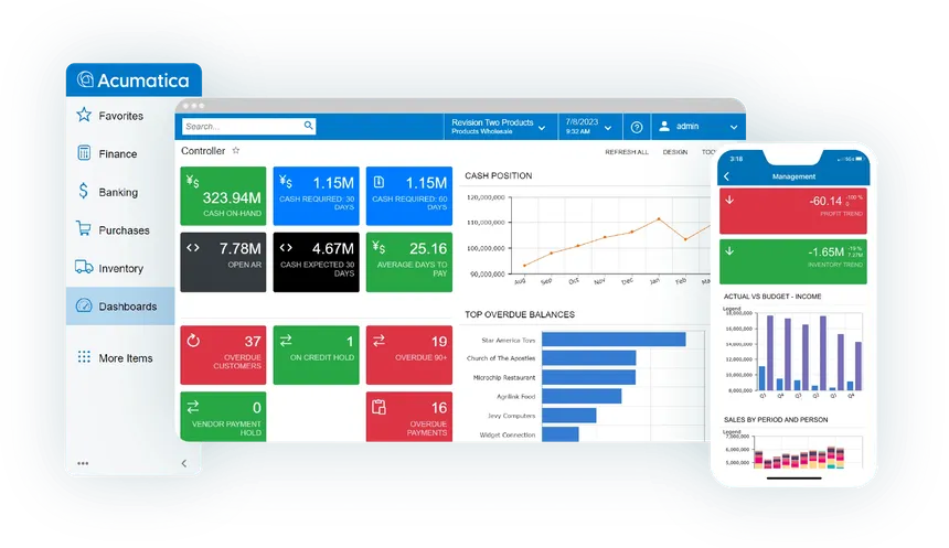Replace Excel-based workarounds and repetitive data entry with one centralized platform built for your entire organization. As a flexible enterprise resource planning (ERP) solution, Acumatica makes this possible with unlimited user licensing, so every team works from the same system, supported by a user-friendly interface, configurable dashboards, and AI-driven insights, enabling faster, smarter business decisions.